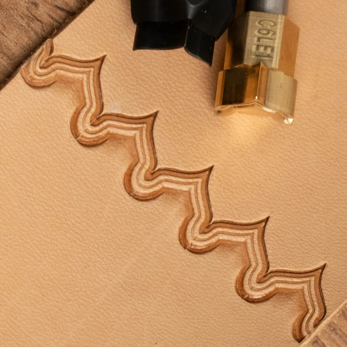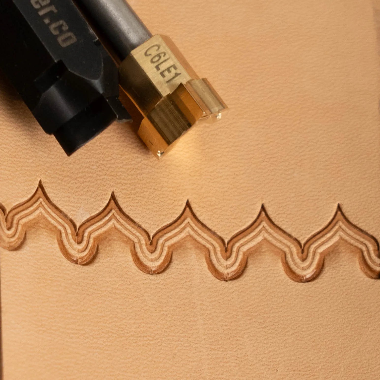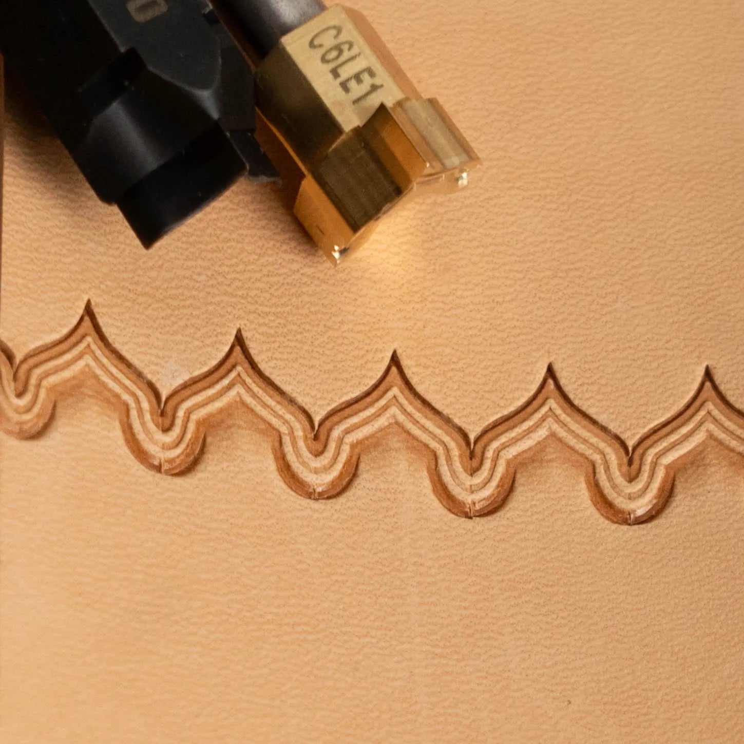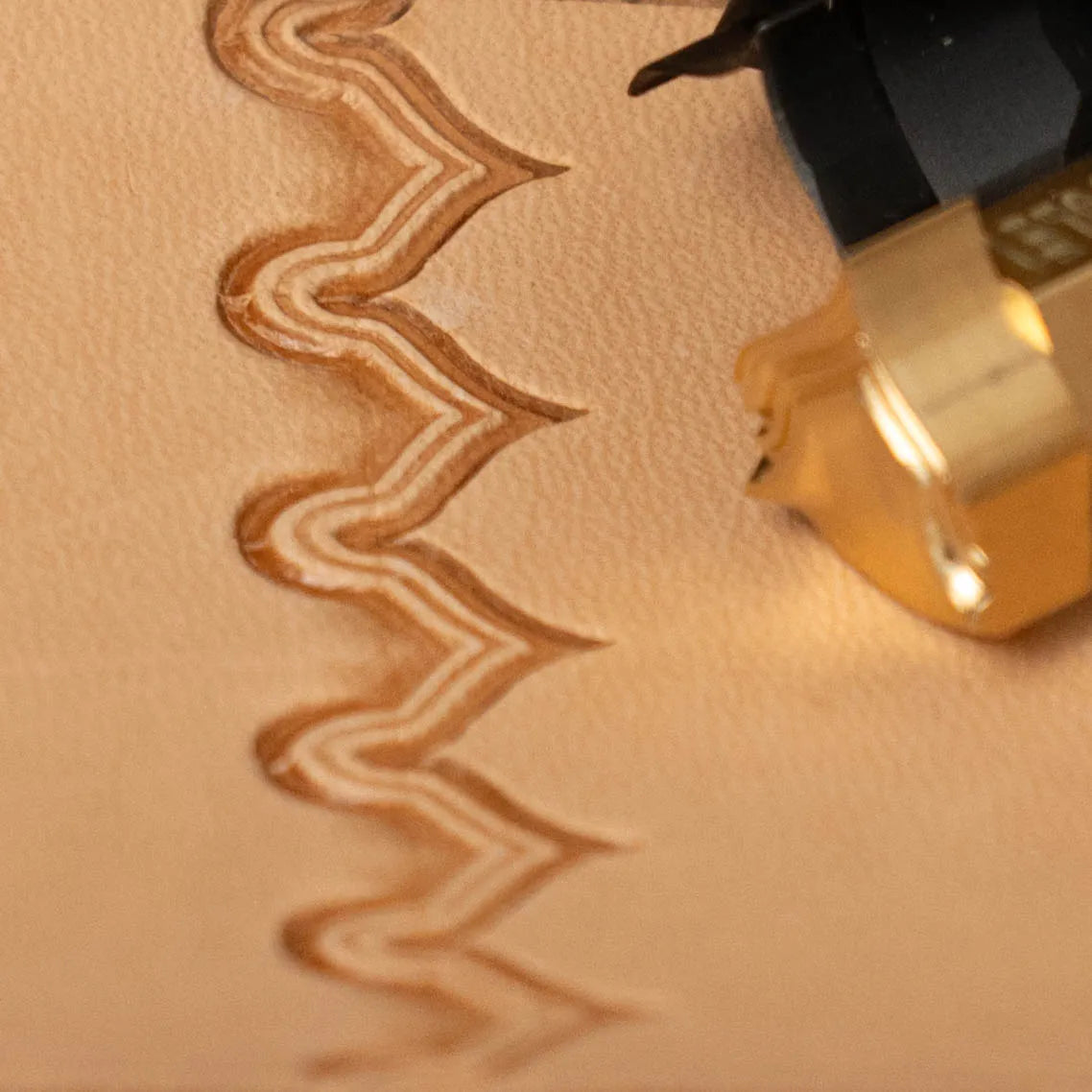 This decorative edge stamp is designed to follow the cut line after working with a leather cutter CT006L, ensuring clean and elegant edges.