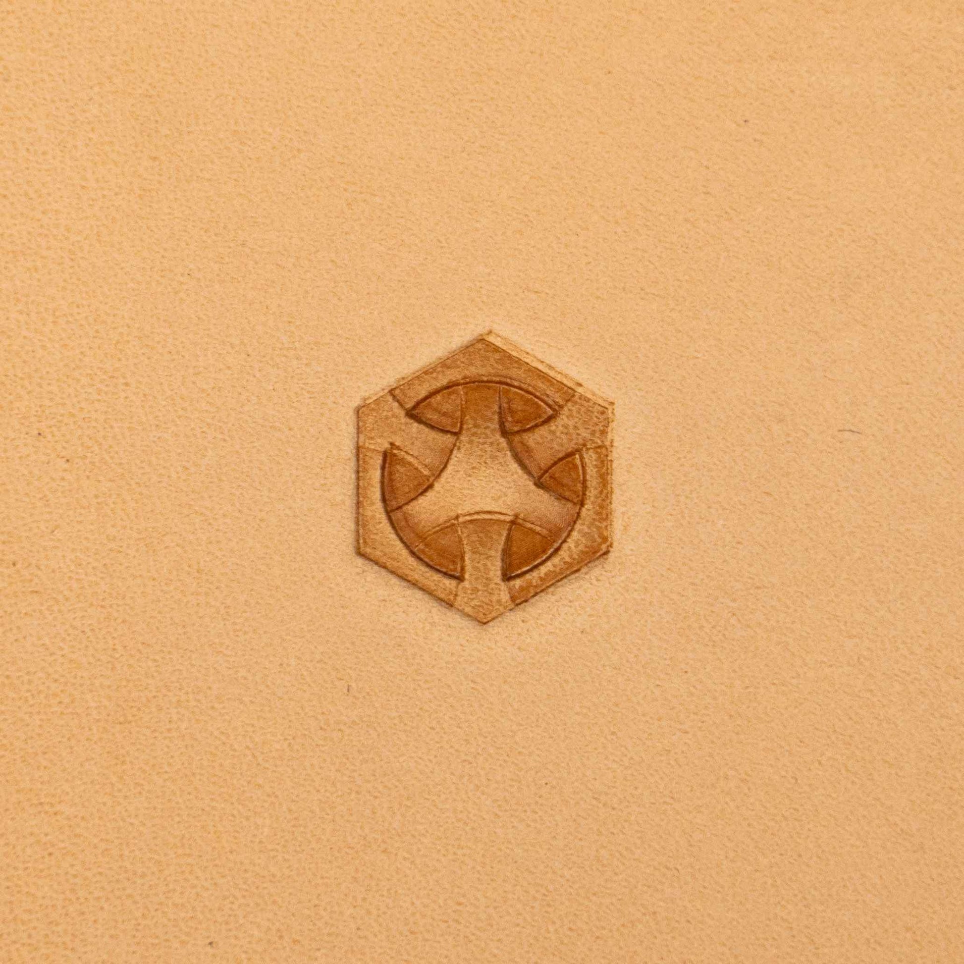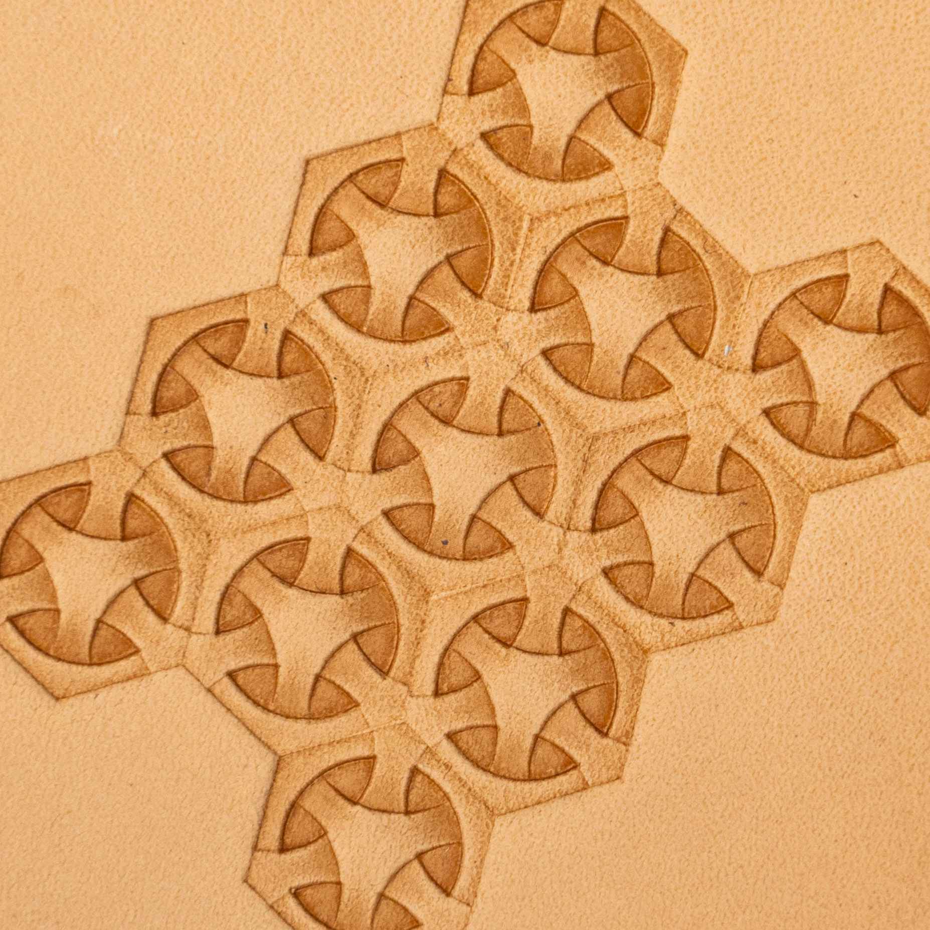 Bring unique flair to your leather projects with the Geometric Interlocking Shapes design, perfect for adding detail to wallets, belts, and other mid-sized items.