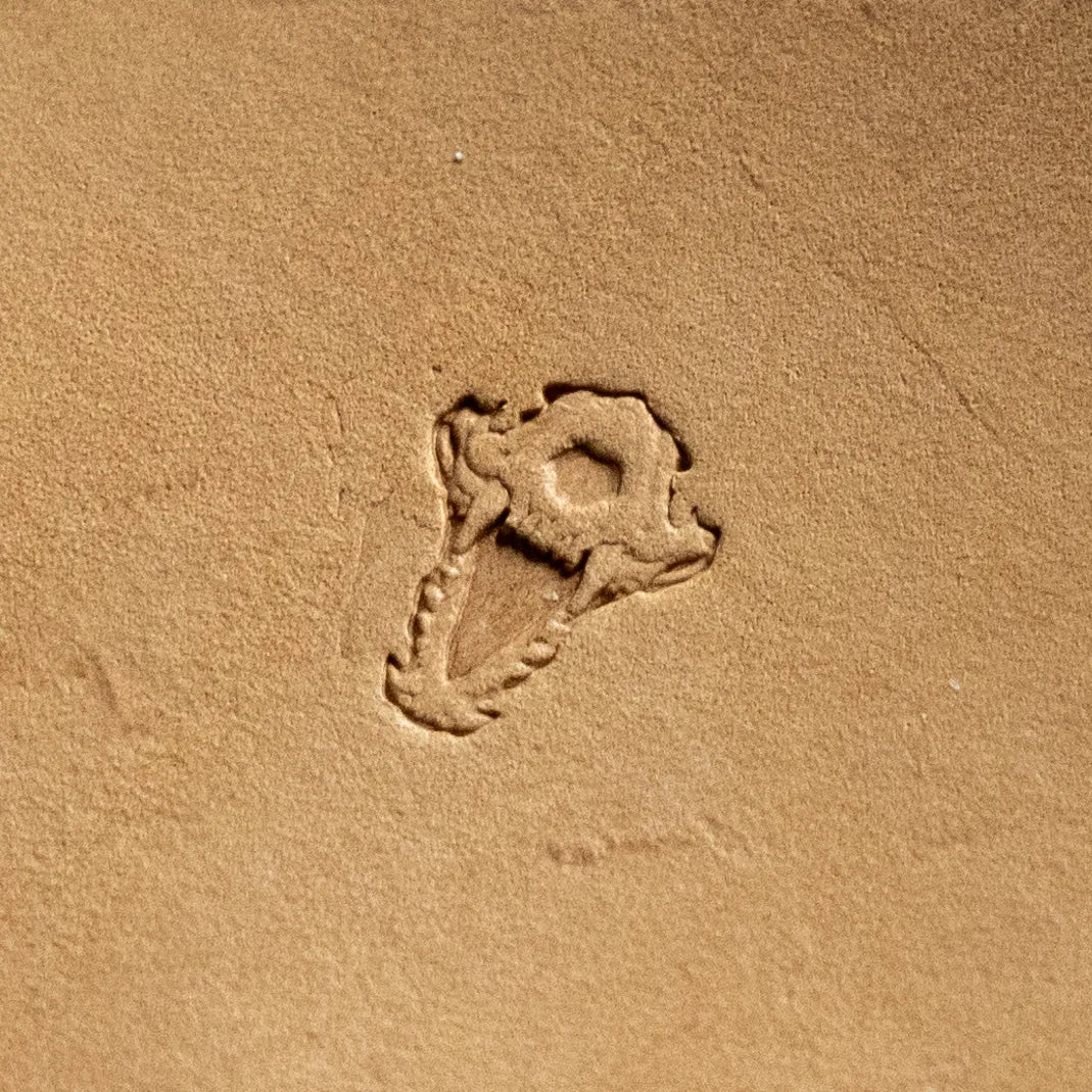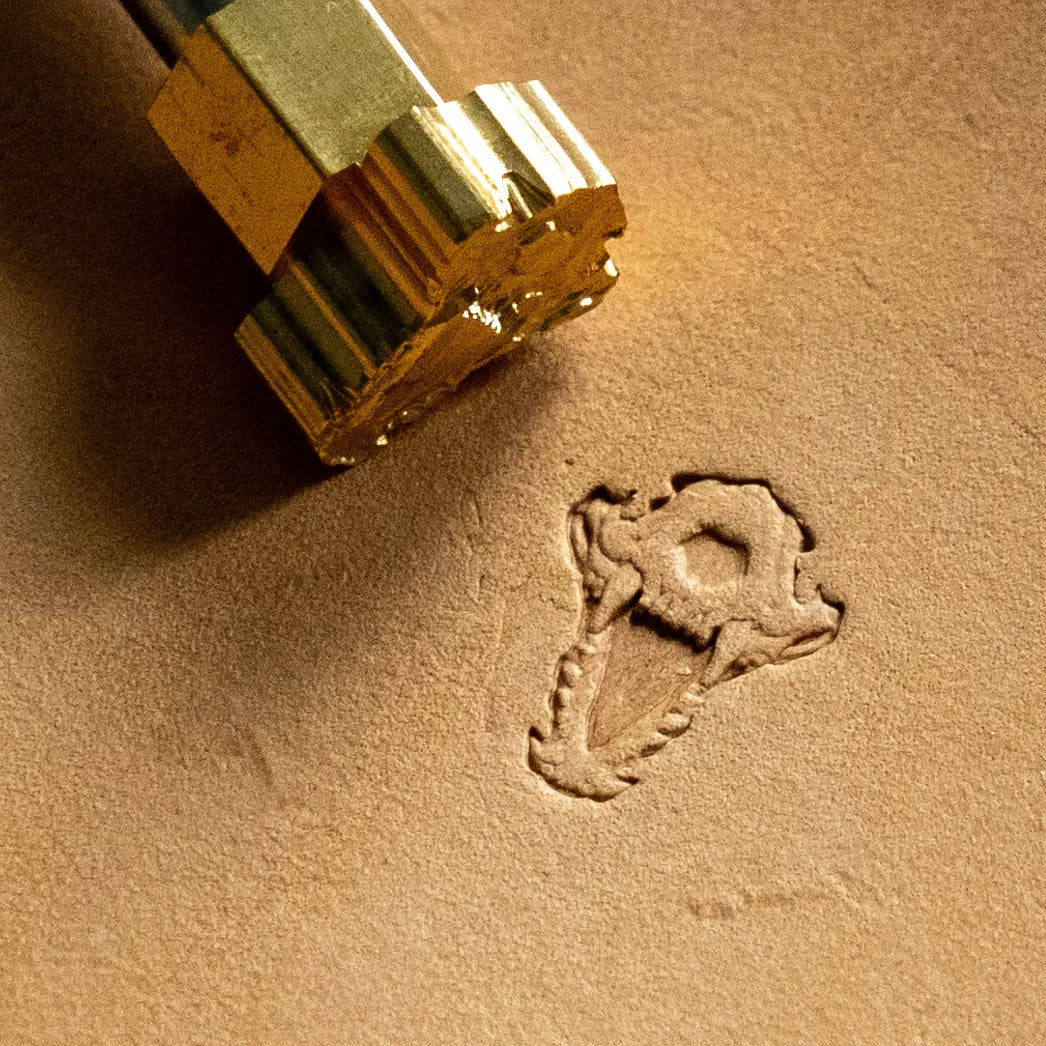 Featuring a distinctive crocodile skull design, this stamp is perfect for adding unique details to small leather items like wallets, belts, or boots.