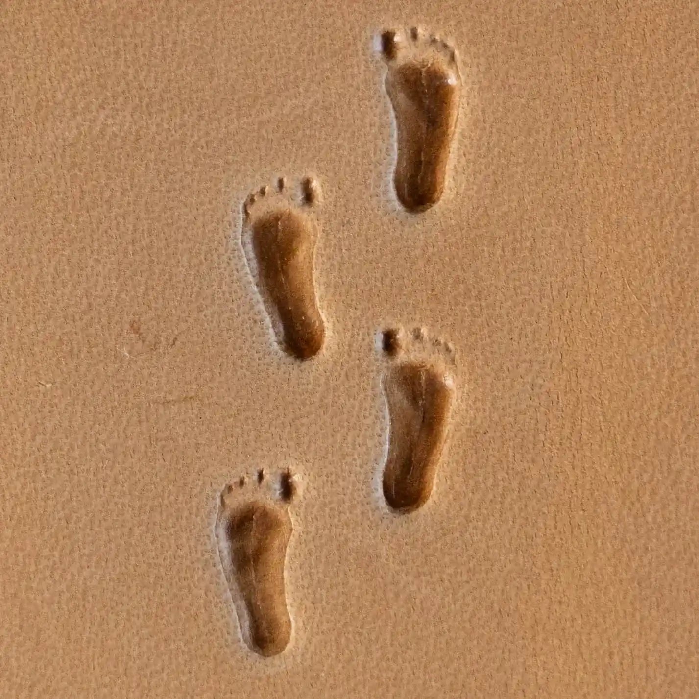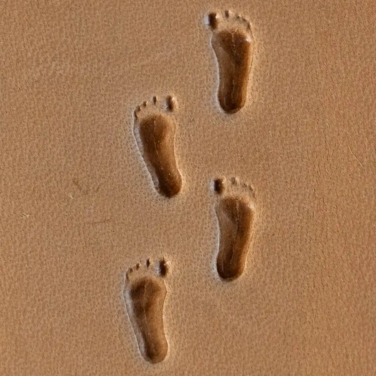 The Bare design, featuring a minimalist footprint motif, is perfect for adding subtle personalization to small leather projects such as keychains, wallets, or watch straps.