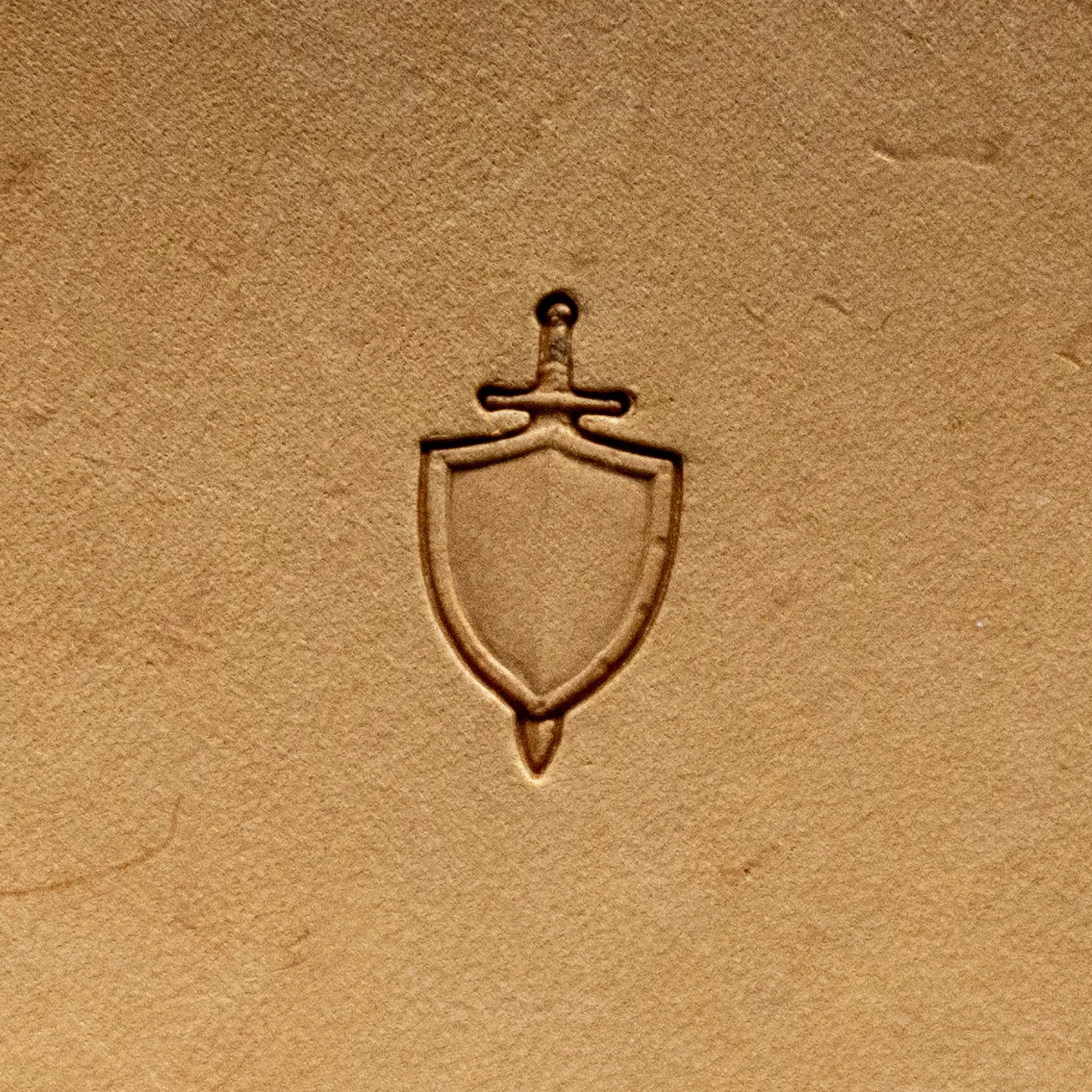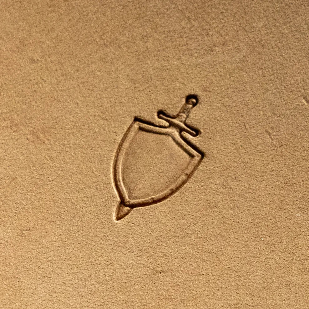 Featuring a detailed Sword Shield design, this stamp is perfect for adding a touch of artistry to your leather projects, whether you're crafting belts, wallets, or small accessories.